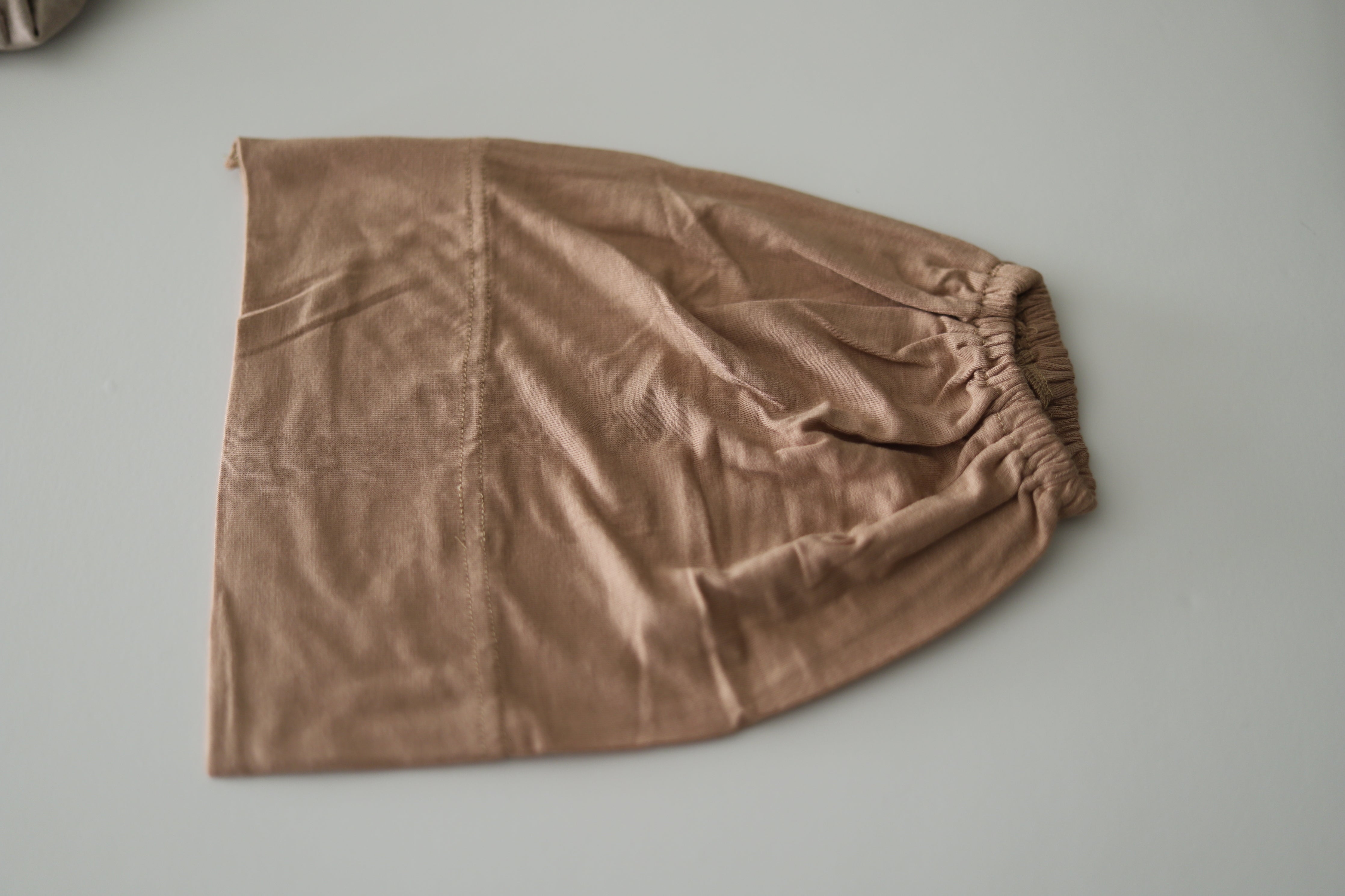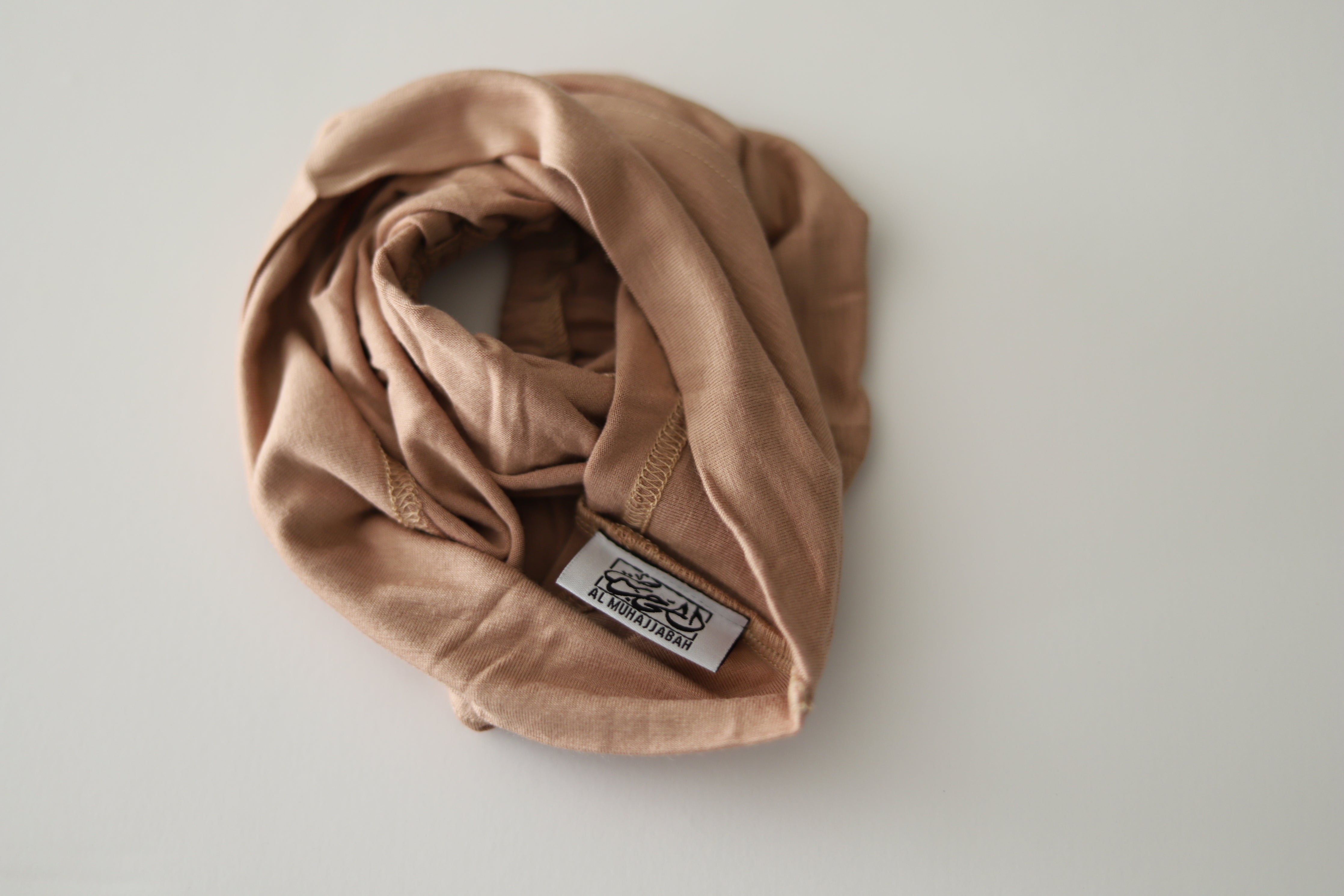 Premium jersey underscarf with an elastic opening for a bun or ponytail. Designed to be worn underneath a hijab to prevent slippage, hairline irritation, and to keep hair in place.